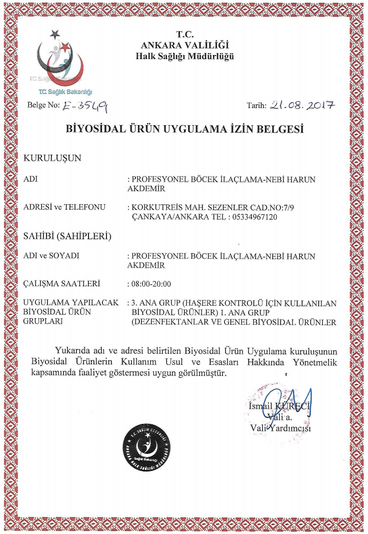 Biyosidal Ürün Uygulama İzin Belgesi