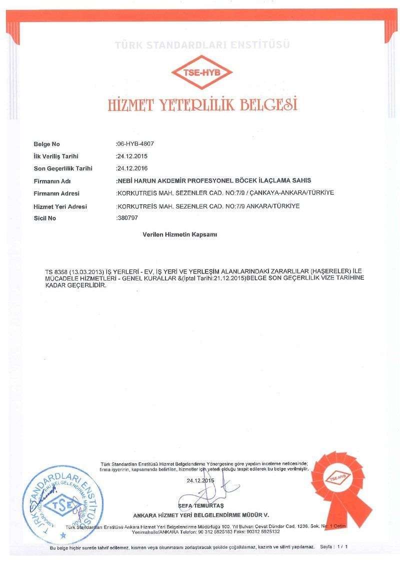 Hizmet Yeterlilik Belgesi